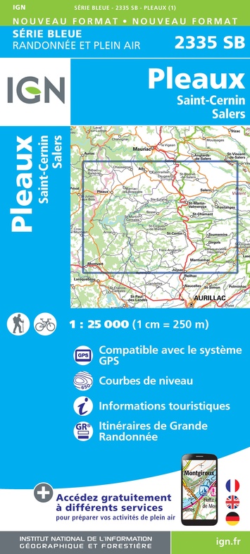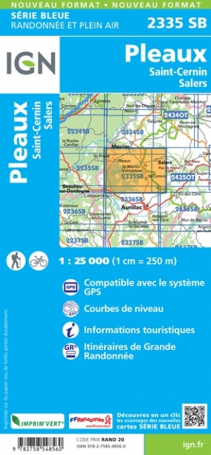 - Wandelkaart - Topografische kaart 2335 SB - Serie Bleue St-Cernin, Salers, Pleaux | IGN - Institut Géographique National
