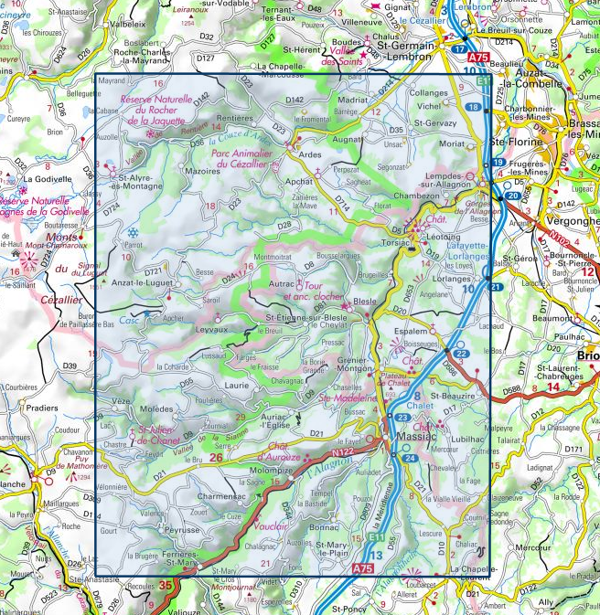 - Wandelkaart - Topografische kaart 2534 SB - Serie Bleue Massiac - Ardes | IGN - Institut Géographique National