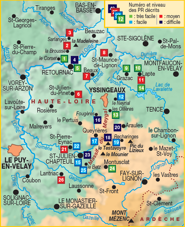 Du promontoire du Meygal aux courbes sinueuses du fleuve sauvage de la Loire, s'épanouissent sucs volcaniques et vallées verdoyantes. Pays des pierres et des forêts où les hommes ont tiré partie de la moindre parcelle, pour construire un espace de bocage clos de murettes, et des maisons massives couvertes de lauzes. De la Loire au Meygal, le pays des Sucs apportera au randonneur la quiétude d'espaces intacts et la découverte d'un patrimoine rural ancestral.
