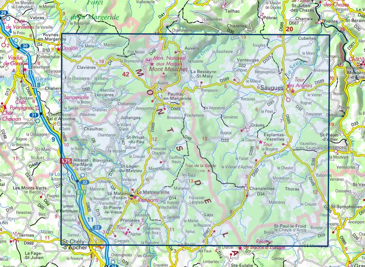 - Wandelkaart - Topografische kaart 2636 SB - Serie Bleue Saugues | IGN - Institut Géographique National