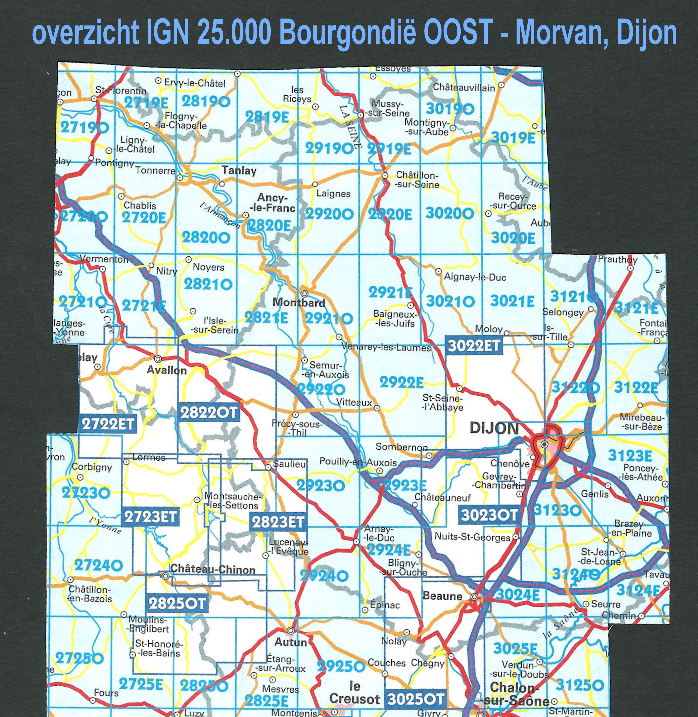 Topografische kaarten IGN 25.000 Bourgondië: OOSTELIJK GEDEELTE + MORVAN