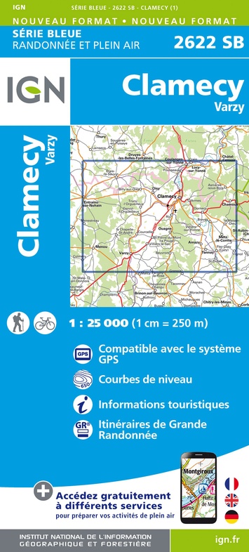- Wandelkaart - Topografische kaart 2622 SB - Serie Bleue Clamecy - Varzy | IGN - Institut Géographique National