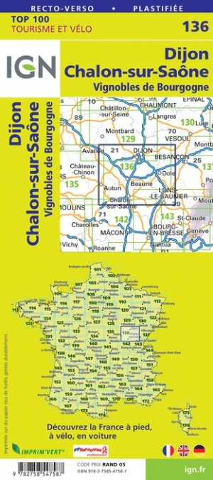 Fietskaart - Wegenkaart - landkaart 136 Dijon - Chalon sur Saone | IGN - Institut Géographique National (9782758547587)