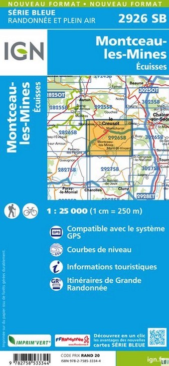 - Wandelkaart - Topografische kaart 2926 SB - Serie Bleue Montceau-les-Mines, Ecuisses | IGN - Institut Géographique National