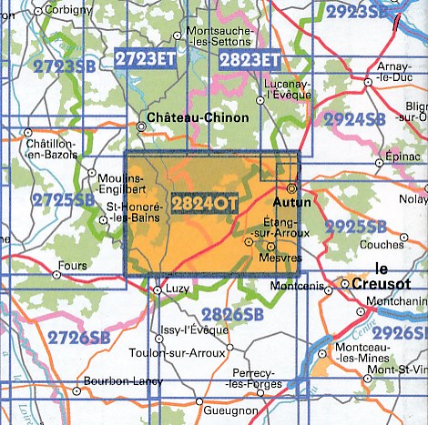 Topografische kaarten IGN 25.000 Bourgondië: OOSTELIJK GEDEELTE + MORVAN