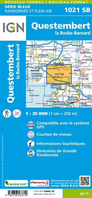 - Wandelkaart - Topografische kaart 1021 SB - Serie Bleue Questembert - La Roche-Bernard | IGN - Institut Géographique National
