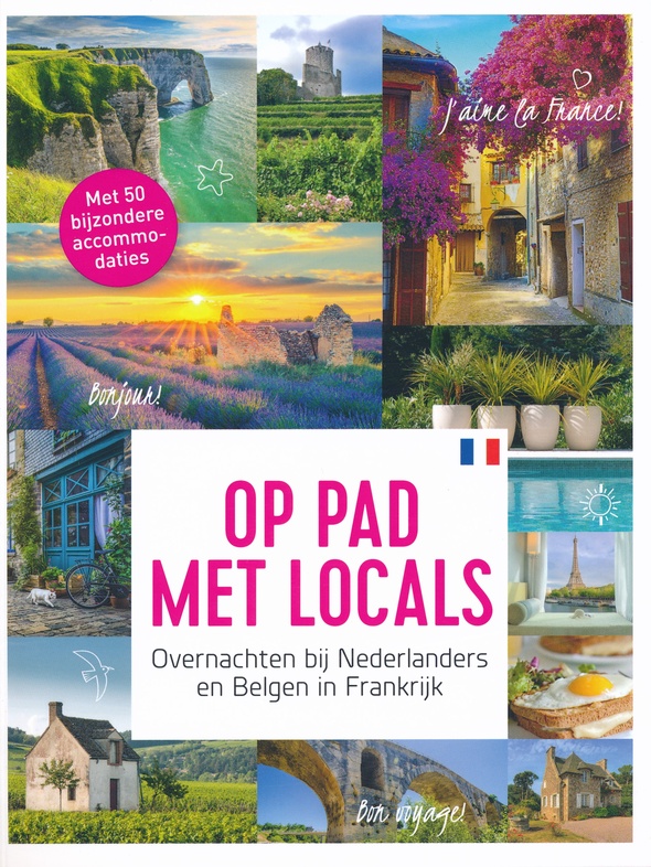 Op pad met locals is een accommodatie- en reisgids in één: ze presenteert 50 bijzondere accommodaties van Nederlanders en Belgen met royale vakantiehuizen, sfeervolle B&B’s of luxe safaritenten. Deze accommodaties zijn zorgvuldig geselecteerd en liggen verspreid door heel Frankrijk. De gastheren en gastvrouwen kennen de omgeving als hun broekzak en delen hun beste insidertips. Zo ontdekt de lezer lokale specialiteiten en verrassende plekjes in bijvoorbeeld de Provence, Dordogne en aan de Côte d’Azur. Reis en accommodatie sluiten perfect op elkaar aan. De gids is ingedeeld naar regio en voorzien van een handige overzichtskaart. Iedere regio wordt beschreven en geïllustreerd met prachtige foto’s. Dankzij de persoonlijke verhalen van de gastheren en gastvrouwen is het ook een unieke reisgids. Een gewilde gids voor Frankrijk liefhebbers die die opzoek zijn naar een bijzondere Nederlandstalige vakantiebestemming.