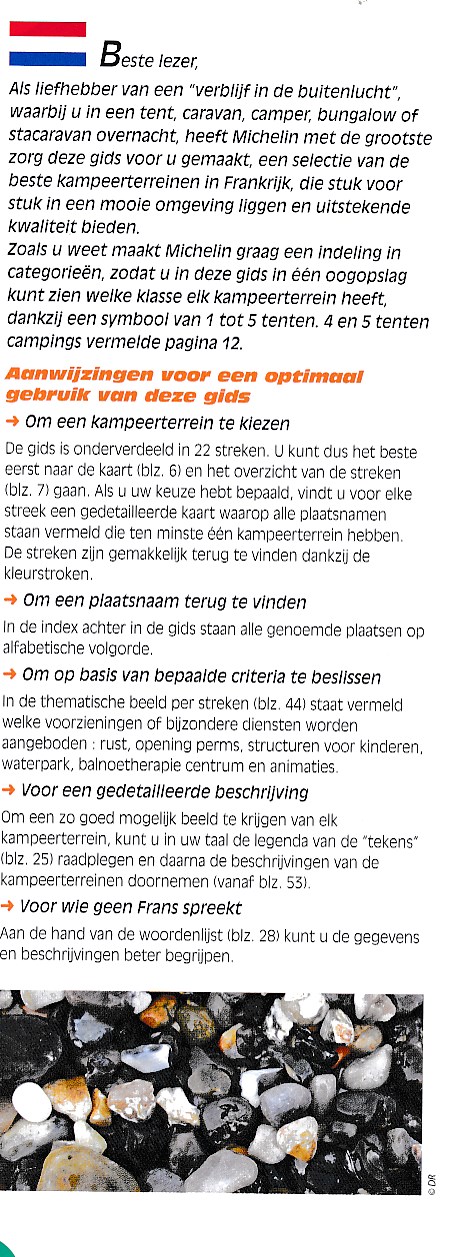 Goede campinggids met een selectie aan campings: ongeveer 2300 stuks! Michelin heeft veelal de Camping Municipal in haar bestand; wat minder voorzieningen, maar wel wat rustiger.