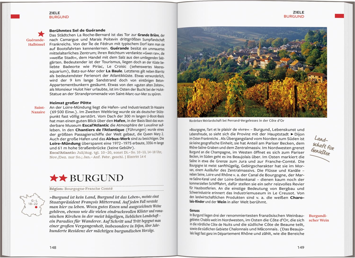 Ihre Reise nach Frankreich steht kurz bevor? Mit unserem Reiseführer Frankreich machen Sie aus Ihrem Urlaub ein unvergessliches Erlebnis. Lassen Sie sich verzaubern von den leuchtenden Lavendelfeldern der Provence und dem azurblauen Wasser der Côte d'Azur. Bestaunen Sie die wilde Bretagne am Atlantik und besuchen Sie die romantische Hauptstadt Paris mit dem weltbekannten Eiffelturm und der glamourösen Champs-Élysées. Fünf inspirierende Tourenvorschläge lassen Sie Frankreich unterwegs entdecken und laden bereits vor der Reise zum Träumen ein. Wir bieten Ihnen umfassendes Hintergrundwissen und verraten, wann Sie zur rechten Zeit am richtigen Ort sind, um Ihren magischen Moment zu erleben. Mit unseren Empfehlungen für Ihren Urlaub in Frankreich entdecken Sie das Besondere, Orte zum Durchatmen und einfach Unbezahlbares.