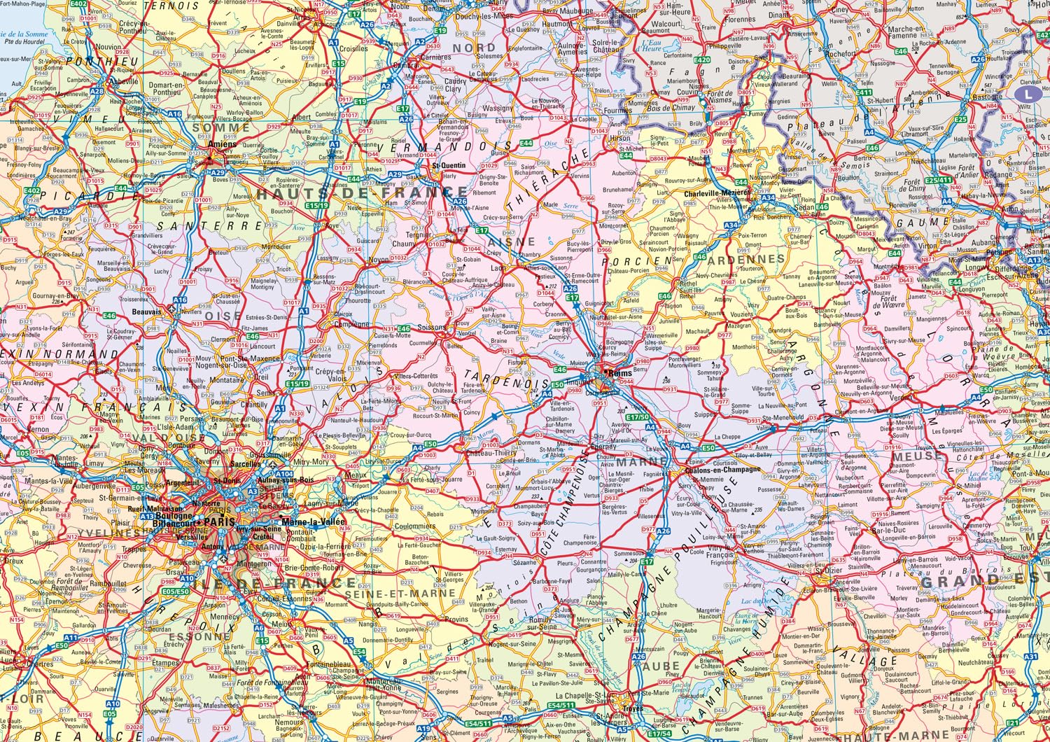 A fully revised and updated colour road map of France at 18 miles to 1 inch / 11km to 1cm. The map shows individual departments by name. All cities, towns, roads, European route numbers, motorways and toll motorways are clearly shown, making it the ideal map for planning and route-finding.The map shows the road network in detail for easy route planning.