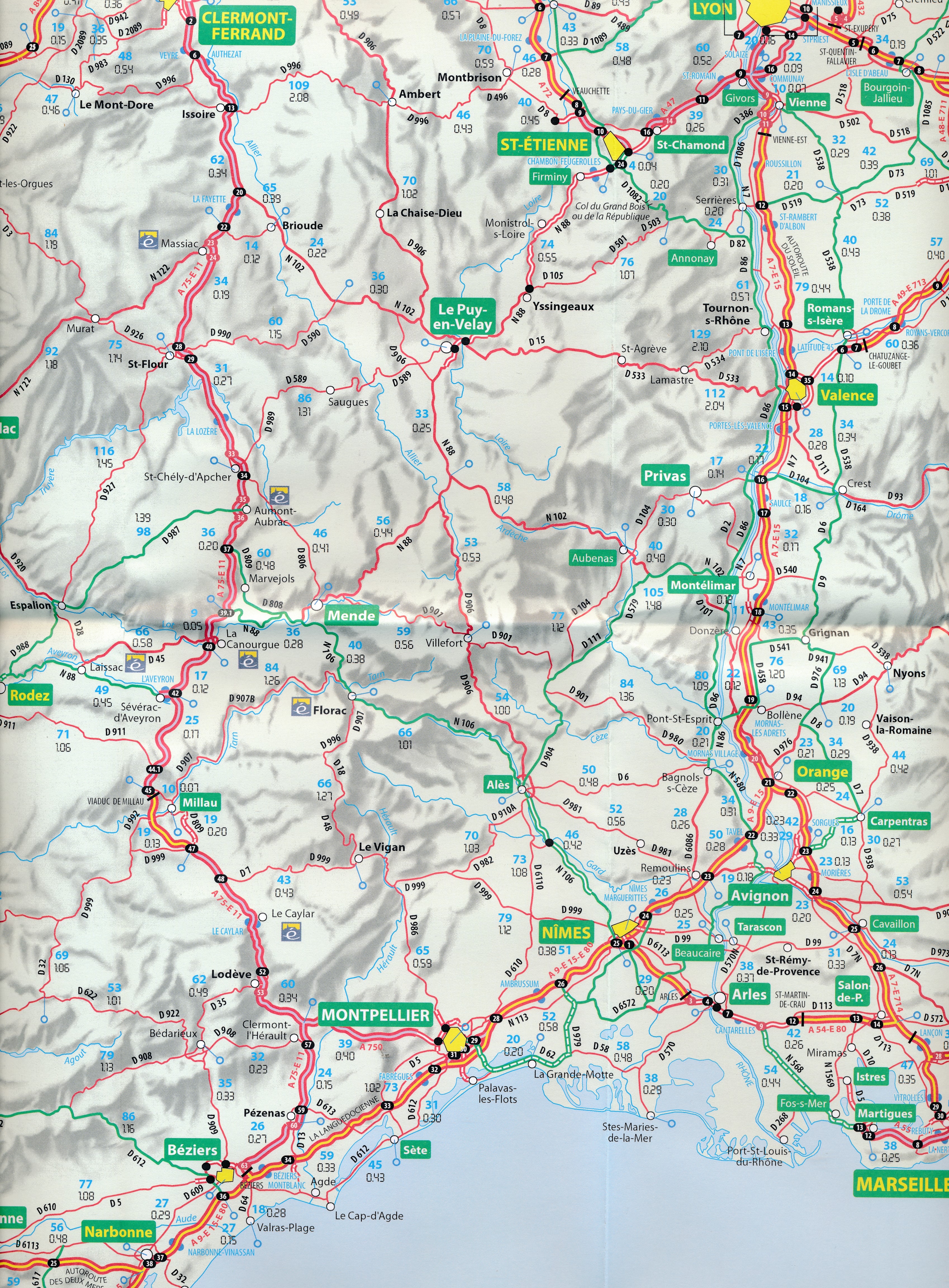 Fijne kaart om routes door Frankrijk te kiezen. vollediger als de ANWB route kaart.