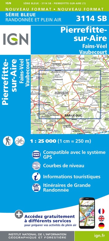 Wandelkaart - Topografische kaart 3114 SB - Serie Bleue Pierrefitte-sur-Aire | IGN - Institut Géographique National (9782758539704)