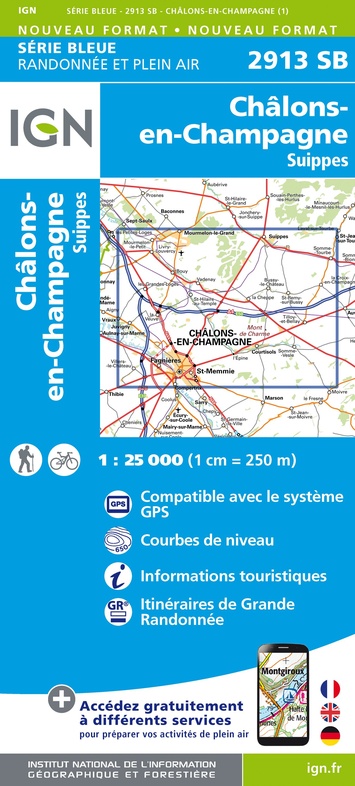 - Wandelkaart - Topografische kaart 2913 SB - Serie Bleue Châlons-en-Champagne | IGN - Institut Géographique National