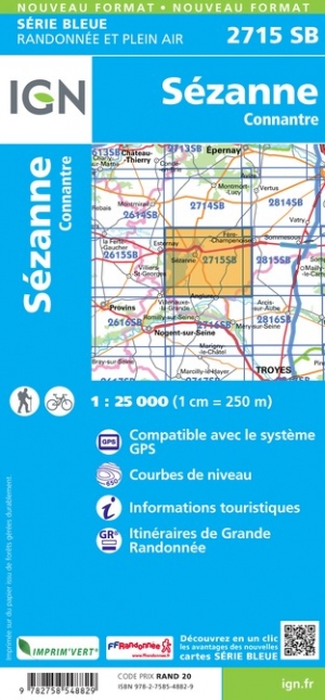 - Wandelkaart - Topografische kaart 2715 SB - Serie Bleue Connantre - Sézanne | IGN - Institut Géographique National