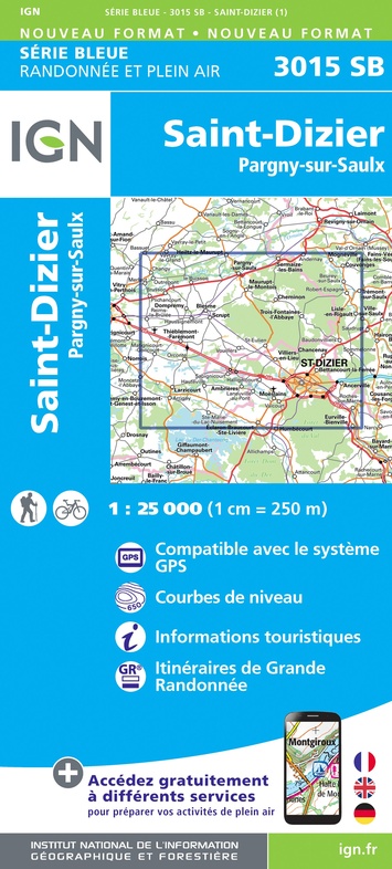 - Wandelkaart - Topografische kaart 3015 SB - Serie Bleue Saint-Dizier, Pargny-sur-Saulx | IGN - Institut Géographique National