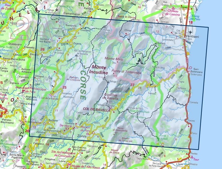 Communes couvertes : Aullène, Olivese, Guitera-les-Bains, Corrano, Sari-Solenzara, Zicavo, Sampolo, Solaro, Cozzano, Serra-di-Scopamène, Zérubia, Conca, Quenza, Sorbollano, Tasso, Chisa