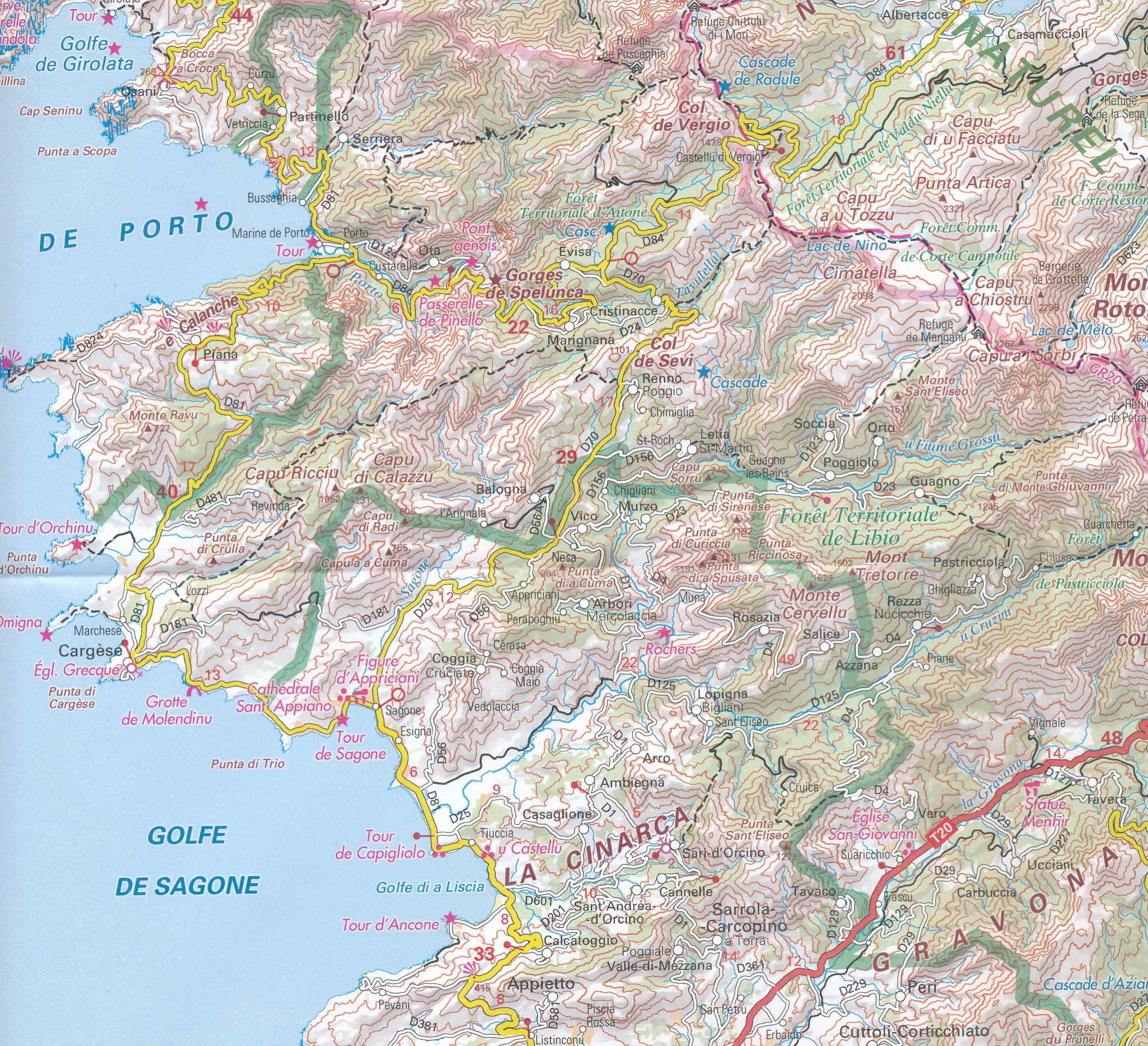 Corsica 2018 is part of IGN's 1:200 000 Regional Road & Tourist series. The map features super clear road detail, showing everything from major motorways to small secondary roads. Toll sections are marked along with the location of the toll gates, the location of the fixed speed cameras is given, service areas and rest areas are shown and junction numbers are clearly marked. All of the bigger roads indicate intermediate road distances.