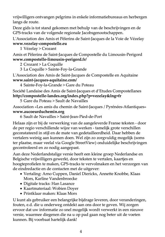 Deze gids beschrijft de route vanaf Vézelay tot St.Jean-Pied-de-Port en is gebaseerd op de beschrijvingen zoals die door de regionale Jacobsgenootschappen zijn samengesteld en worden onderhouden. De gids bevat de beschrijving van de noordelijke variant via Bourges. Er is ook een gids voor de zuidelijke route via Nevers. Samenstelling: Werkgroep 'Pelgrimsweg Vézelay'van het Nederlands Genootschap van Sint Jacob te Utrecht.