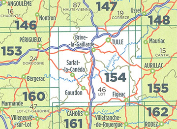 Fietskaart - Wegenkaart - landkaart 154 Brive la Gaillard - Tulle - Figeac | IGN - Institut Géographique National (9782758543800)