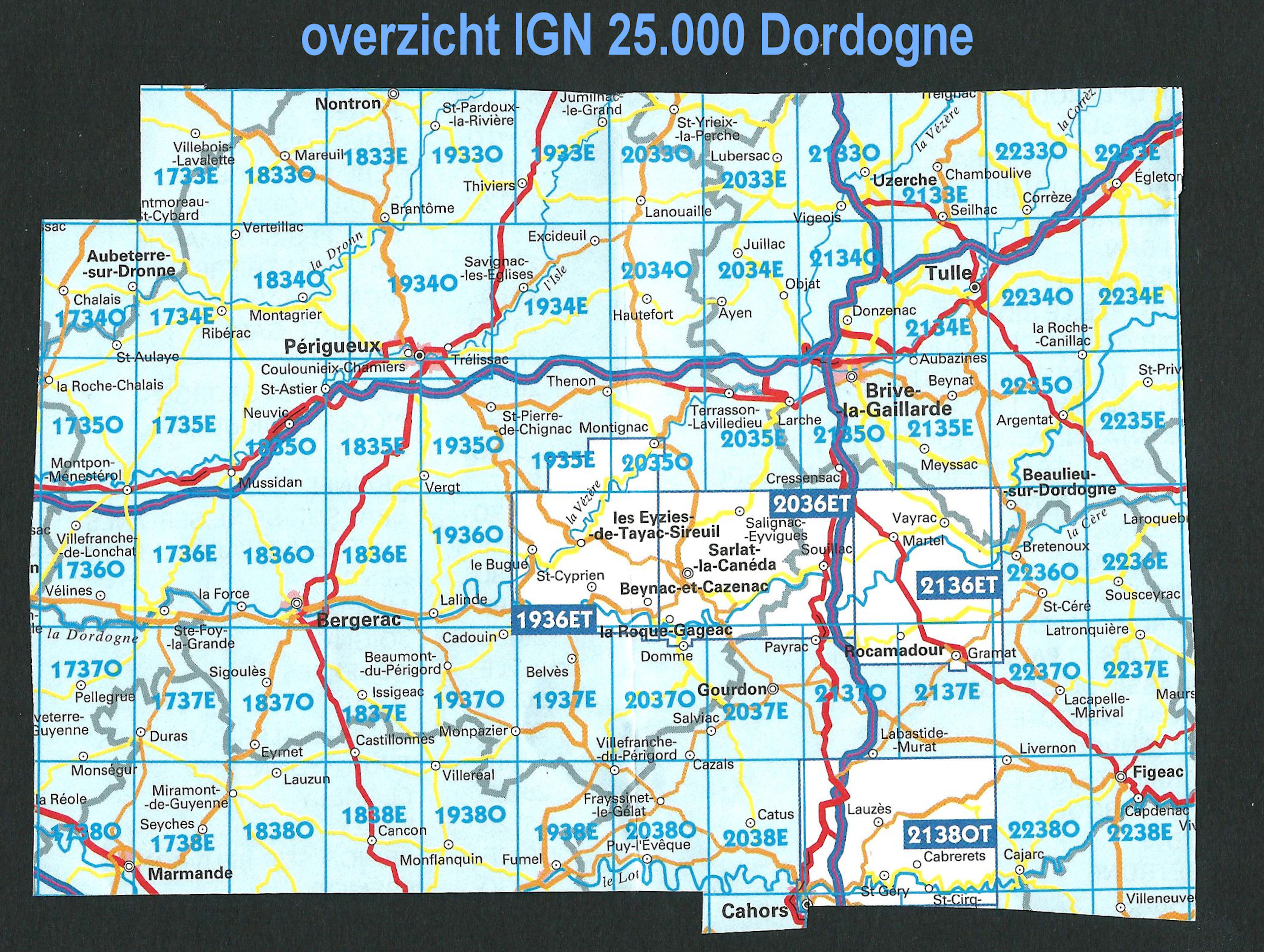 Topografische IGN 25.000 Dordogne - Périgueux - Bergerac - Brive la Gaillarde