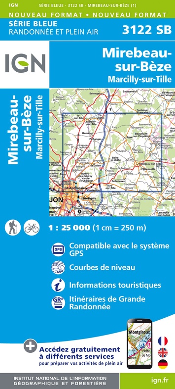 - Wandelkaart - Topografische kaart 3122 SB - Serie Bleue Mirebeau-sur-Bèze | IGN - Institut Géographique National
