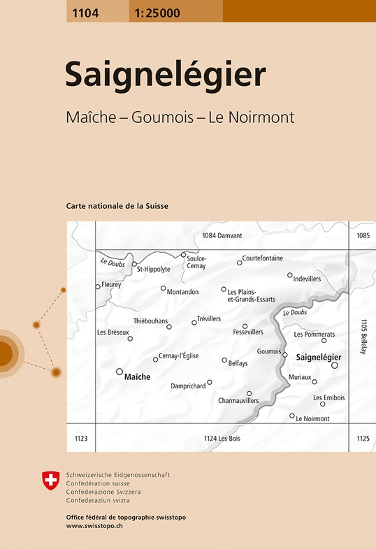 - Wandelkaart - Topografische kaart 1104 Saignelégier | Swisstopo