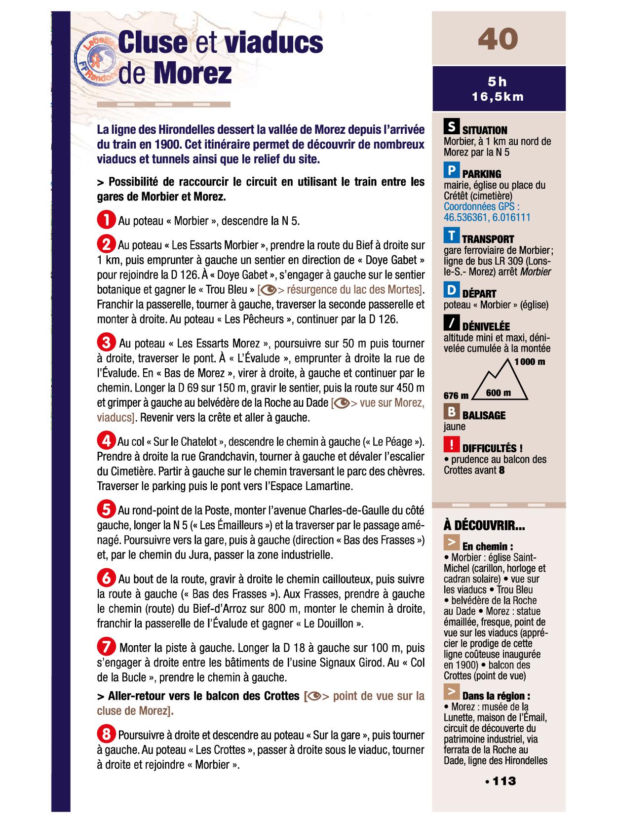 Leuke routes doorheen de hele Jura. Handig als je de hele regio wilt ontdekken. De schaal van de kaarten is net klein genoeg om op te wandelen. Alle routes die wij hebben gelopen waren ook in het veld goed gemarkeerd. Teksten zijn in het Frans. Leuke uitleg over de regio. Er is ook goed aangegeven waar je makkelijk kan parkeren.