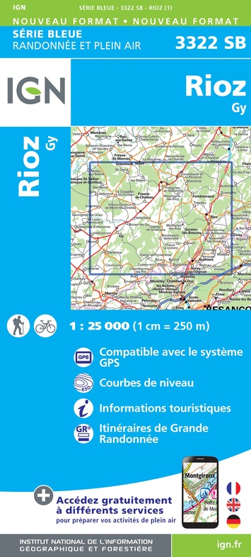 - Wandelkaart - Topografische kaart 3322 SB - Serie Bleue Gy - Rioz | IGN - Institut Géographique National