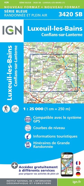 - Wandelkaart - Topografische kaart 3420 SB - Serie Bleue Luxeuil-les-Bains, Conflans-sur-Lanterne | IGN - Institut Géographique National