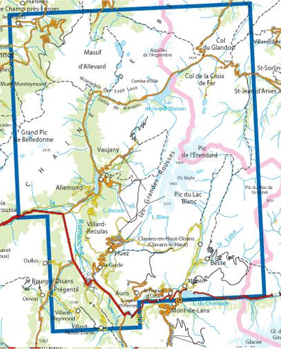 Communes couvertes : Le Bourg d'Oisans, l'Alpe d'Huez, Grandes Rousses, Sept Laux, Oz, La Garde, Saint-Sorlin-d'Arves, Mizoën, Sainte-Agnès, Huez, Besse, Villard-Reculas, Auris, Le Freney-d'Oisans, Villard-Reymond, Oulles, Ornon, Allemond, Les Adrets, Saint-Colomban-des-Villards, Laval, Clavans-en-Haut-Oisans