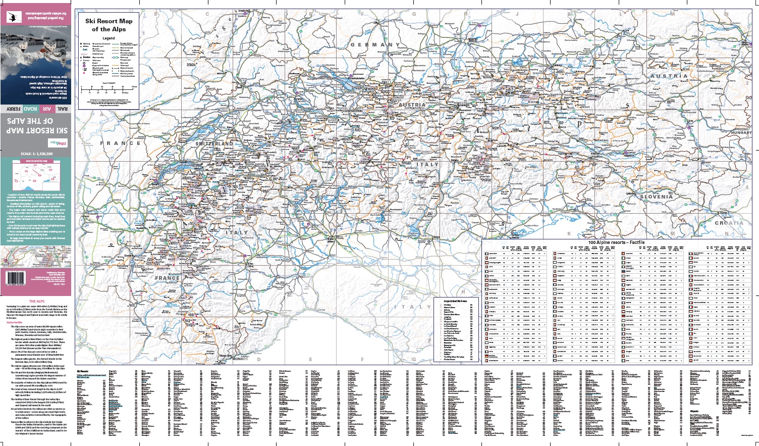 De eerste uitgebreide kaart van ski-resorts in the Alpen, waarop de locatie van 640 resorts getoond wordt. De onafhankelijke reizigers kunnen hierdoor hun(ski)reis naar en door de Alpen goed voorbereiden en plannen.- aantrekkelijke, duidelijke kaarten met de locatie van 640 geïndexeerde alpine resorts in Oostenrijk, Frankrijk, Duitsland, Italië, Liechtenstein, Slovenië en Zwitserland