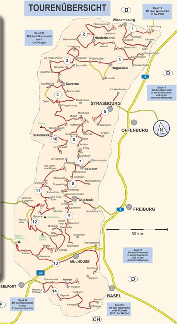 TOURENKARTENBummeln Sie auf 14 sorgfälltig, recherchierenTouren durch das Elsass und die Vogesen. Orientieren Sie sich mit präzisen Übersichtskarten über alle Stell- und Campingplätze, Ver- und Entsorgungsstellen und die empfohlenen Reiserouten. NATUR ERLEBEN, WANDERNErleben Sie auf beschaulichen Kurzstrecken zwischen den Dörfern die Weinberge oder auf Wanderrouten die Wälder, Bergseen,Hochweiden, und Vogesengipfel. Erklettern und bestaunen Sie einstmals stolze Burgen und Schlösser.KULTURSCHÄTZE, STÄDTESpazieren Sie durch Strasbourg und Colmar mit dem Münster und dem Isenheimer Altar, sowie durch Weinstraßendörfer, darunter Riquewihr, Kaysersberg und Turckheim. Und verlieben Sie sich in unbekannte Sehenswürdigkeiten abseits der ausgetretenen Pfade.SCHAUEN UND GENIESSENProfitieren Sie von anonym getesteten Restaurant- oder Weinstubenempfehlungen und genießen Sie elsässische Köstlichkeiten wie Flammkuchen und Choucroute - oder ein Edel-Menü. Informieren Sie sich mit Hintergrundstories und über 350 Fotos.WOMO-ServiceErfahren Sie alles über etwa 200 Stell- und Campingplätze mit ausführlicher Beschreibung der Lage, der GPS-Koordinaten, der Ausstattung und des gesamten Umfeldes. Nutzen Sie unsere Bewertungen und die zahlreichen Insidertipps.