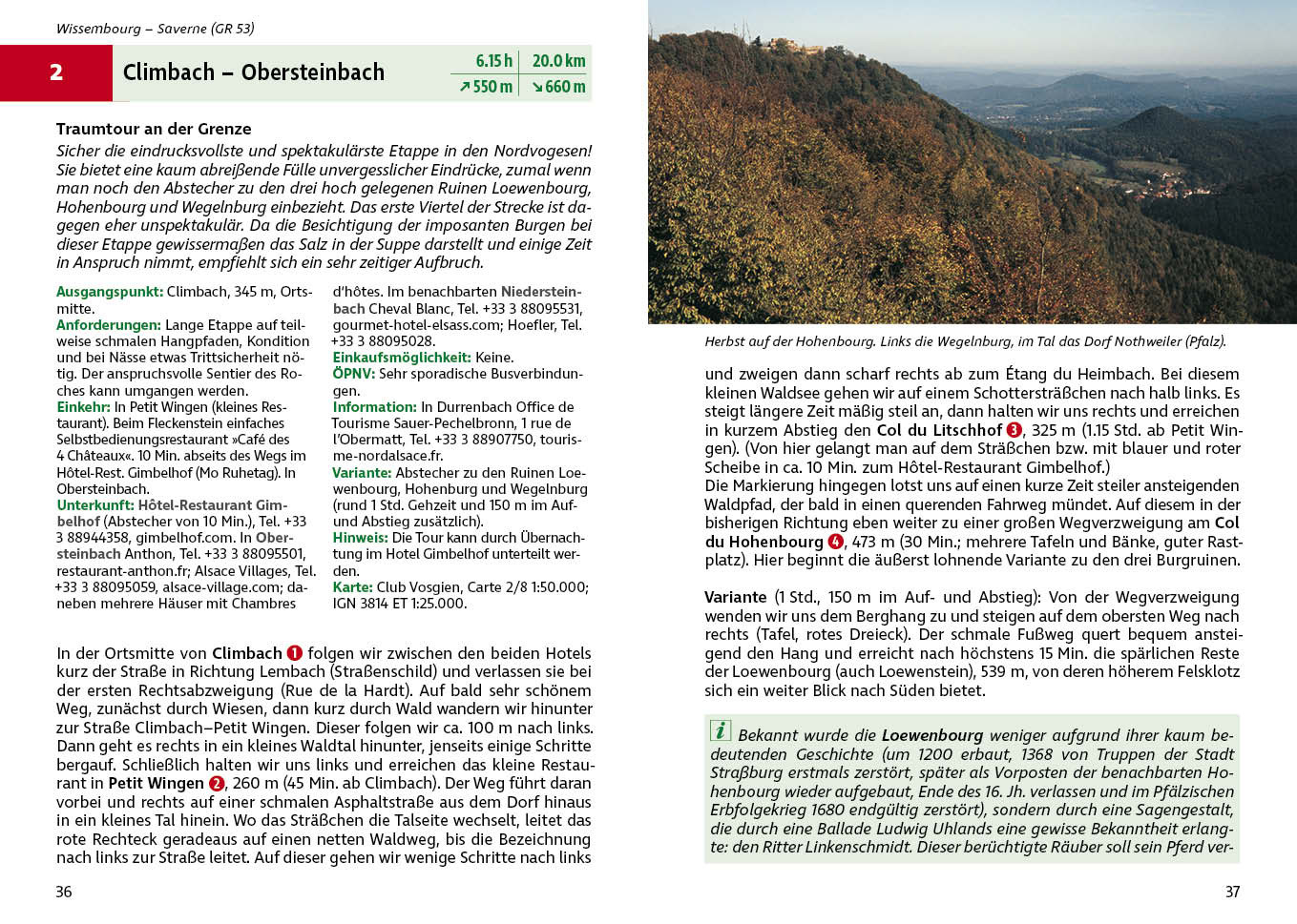 36 Etappen – auf dem GR 53 und dem GR 5 von Wissembourg nach Giromagny / Masevaux.