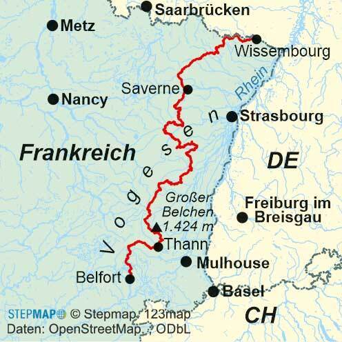 Der GR 5/53 durchquert auf rund 430 km die gesamten Vogesen. Während der 22 Etappen präsentiert sich das französische Mittelgebirge mit all seinen Besonderheiten und in all seiner Schönheit. Oft säumen zudem faszinierende Felsgebilde, Burgen, Schlösser und Ruinen den Weg.