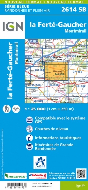 - Wandelkaart - Topografische kaart 2614 SB - Serie Bleue La Ferté-Gaucher, Montmirail | IGN - Institut Géographique National