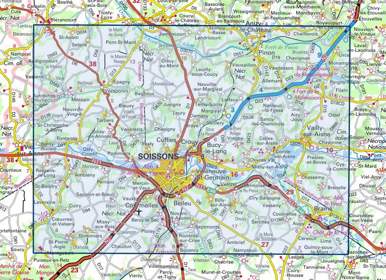 - Wandelkaart - Topografische kaart 2611 SB - Serie Bleue Braine - Soissons | IGN - Institut Géographique National