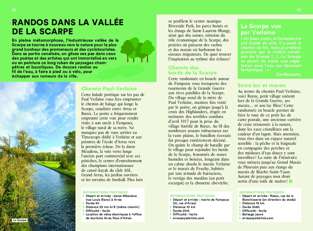 Nouveauté ! Un grand week-end inédit et 100% terroir à la découverte de la splendide ville d'Arras et du beau et vaste pays d'Artois. Dans ce guide, - La visite de tous les sites incontournables d'Arras et environs : le Louvre-Lens, les lieux de mémoire de la guerre de 14-18 à Neuville-Saint-Vaast, les hameaux de carte postale du Mont Saint-Eloi, l'église Notre-Dame de Rocquigny, le donjon de Bours, les jardins de Séricourt.- Des expériences uniques : survoler les douves d'Arras en tyrolienne, prendre un cours de biérologie, jouer aux apprentis brasseurs ou faire du rafting sur la Scarpe. - Des activités 100 % bol d'air : balades à pied ou à vélo dans la vallée de la Scarpe ou pourquoi pas accompagner les biquettes lors de la fête de la transhumance à Noeux-lès-Auxi ! - Notre sélection d'adresses pour se faire plaisir : fermes-auberges, cabanes nichées en pleine verdure, café culturel et créateurs locaux !