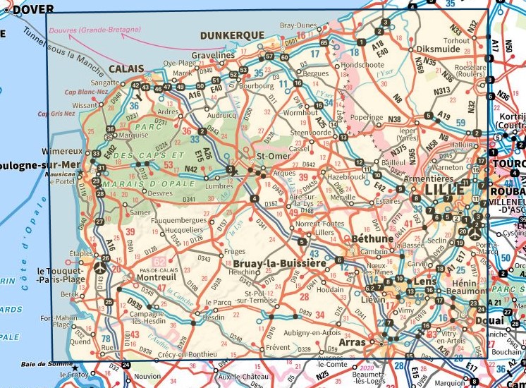 - Fietskaart - Wegenkaart - landkaart D62 Top D100 Pas-de-Calais | IGN - Institut Géographique National