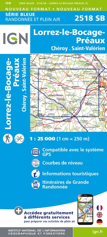 - Wandelkaart - Topografische kaart 2518 SB - Serie Bleue Lorrez-le-Bocage-Préaux, Chéroy, St-Valérien | IGN - Institut Géographique National