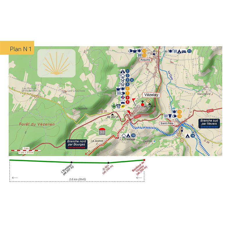 At the beginning, the pilgrim has the choice between the northern branch, via Bourges, and the southern branch, via Nevers. In this book, we have decided to promote the itinerary of the associations of pilgrims to Santiago de Compostela, which is the most faithful to the historical itinerary of the Way of Vezelay. The route described is therefore the one promoted by theassociation of the Friends of Saint James of the Way of Vézelay. We have chosen to describe the route up to Saint-Jean-Pied-de-Port, so as not to leave the pilgrim in doubt about his accommodation for 50 kilometers. The reference guide for walking independently on the Vézelay Way, also called Via Lemovicensis.