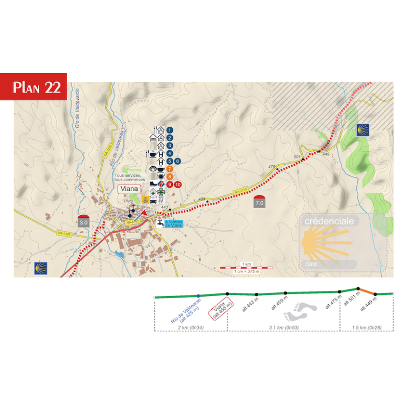 De uitgebreid in het Frans beschreven adressen (met prijzen en condities) van restaurants, cafe's en slaapplekken, zoals kloosters, herbergen, gastverblijven en campings liggen allen binnen een straal van 5km van de wandelroute. De gids geeft ook andere praktische informatie zoals adressen van postkantoren, apotheken, banken, etc.