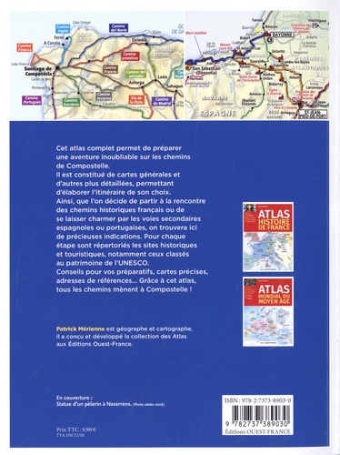 Nouvelle édition en 64 pages (ajout de 16 pages) Ajout de nouvelles cartes en dehors des 4 voies principales, en particulier sur les voies secondaires en France et en Espagne - Les chemins de Compostelle comptent quatre voies historiques en France et trois en Espagne, auxquelles se greffent une multitude d'autres chemins : itinéraires de pèlerinages, chemins secondaires historiques, sentiers de liaisons, voies pédestres thématiques...- Pour s'y retrouver, l'atlas des chemins de Saint-Jacques vous permettra de chercher, de localiser et de suivre une voie de pèlerinage, de choisir une bifurcation vers un autre chemin, ou de composer un itinéraire à votre goût. - De nombreux sites historiques, culturels ou touristiques sont cartographiés sur les chemins ou à proximité.