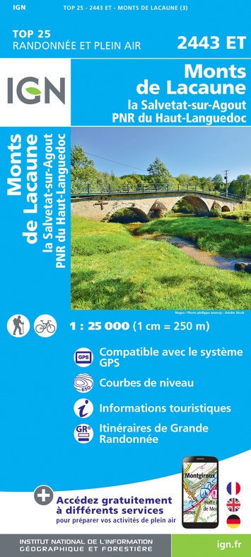 - Wandelkaart - Topografische kaart 2443ET Monts de Lacaune, La Salvetat - sur - Agout, PNR du Haut Languedoc | IGN - Institut Géographique National