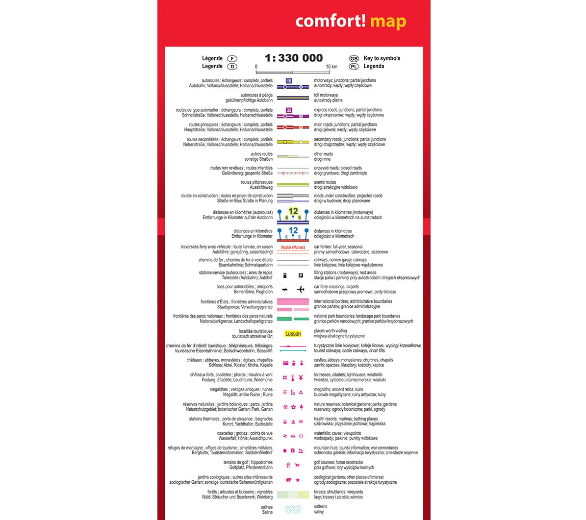 ExpressMap is de uitgever van comfort! maps, geplastificeerde kaarten die eenvoudig te vouwen zijn, zelfs met één hand. Een uniek en innovatief product. Comfortabel, waterbestand, onverscheurbaar, comfort! maps blijven hun kwaliteit lang behouden. Duurzame kaarten, nuttig om een uitstap te plannen en handig voor onderweg.Een aantal belangrijke kenmerken van deze kaarten: