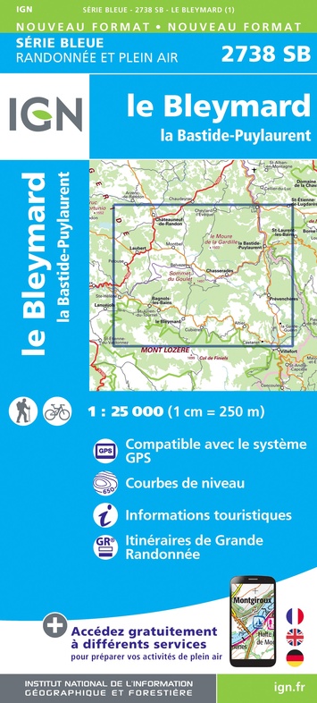 - Wandelkaart - Topografische kaart 2738 SB - Serie Bleue Le Bleymard | IGN - Institut Géographique National