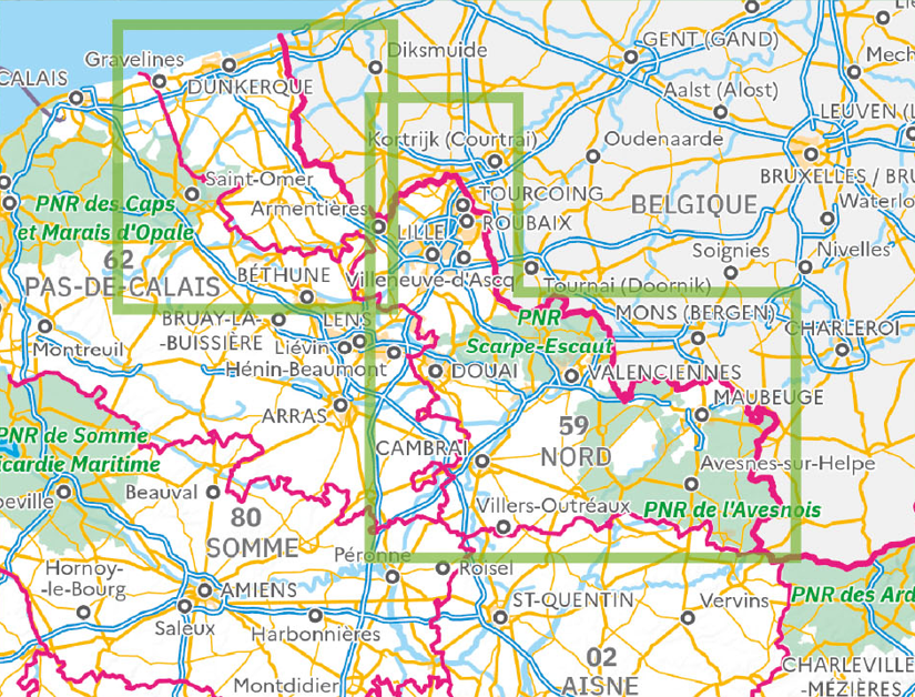 - Fietskaart - Wegenkaart - landkaart D62 Top D100 Pas-de-Calais | IGN - Institut Géographique National