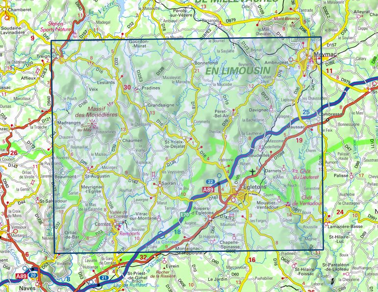 - Wandelkaart - Topografische kaart 2233 SB - Serie Bleue Egletons - Meymac - Corrèze | IGN - Institut Géographique National