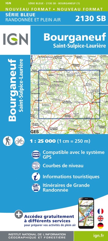 - Wandelkaart - Topografische kaart 2132 SB - Serie Bleue Châteauneuf-la-Forêt, Chamberet | IGN - Institut Géographique National
