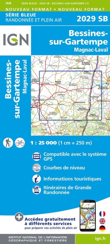 - Wandelkaart - Topografische kaart 2029 SB - Serie Bleue Bessines-sur-Gartempe | IGN - Institut Géographique National