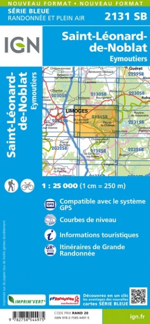 - Wandelkaart - Topografische kaart 2131 SB - Serie Bleue St-Léonard-de-Noblat, Eymoutiers | IGN - Institut Géographique National